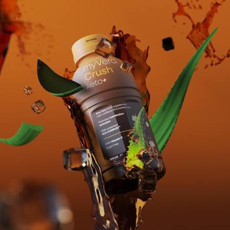 MYVERA CRUSH Keto + est un complément alimentaire cétogène avec caféine et édulcorants à base de jus et de pulpe d'aloe vera et de vitamine C, caractérisé par un délicieux goût de cola. Dotés de nombreuses propriétés bénéfiques, l'aloe vera et la vitamine C sont convenablement équilibrés dans la boisson pour former le complexe breveté ALO-COMPLEX™, qui exerce une action purifiante et antioxydante sur le corps.